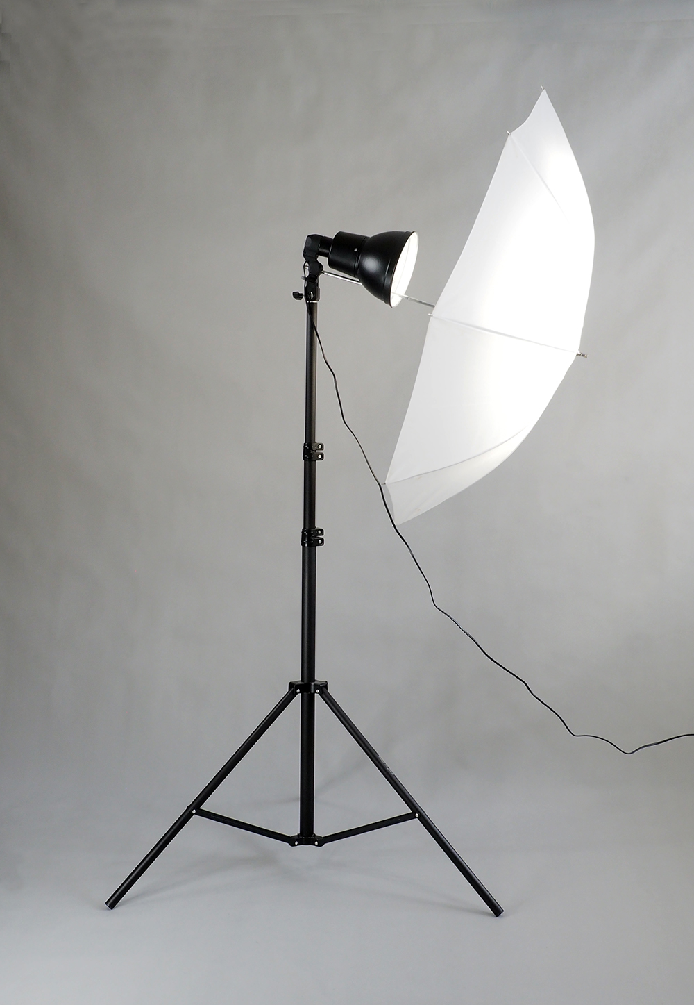 Комплект состоит из плафона-рефлектора со штативной головкой, стойки и комбинированного зонта, который можно использовать как на просвет, так и на отражение.